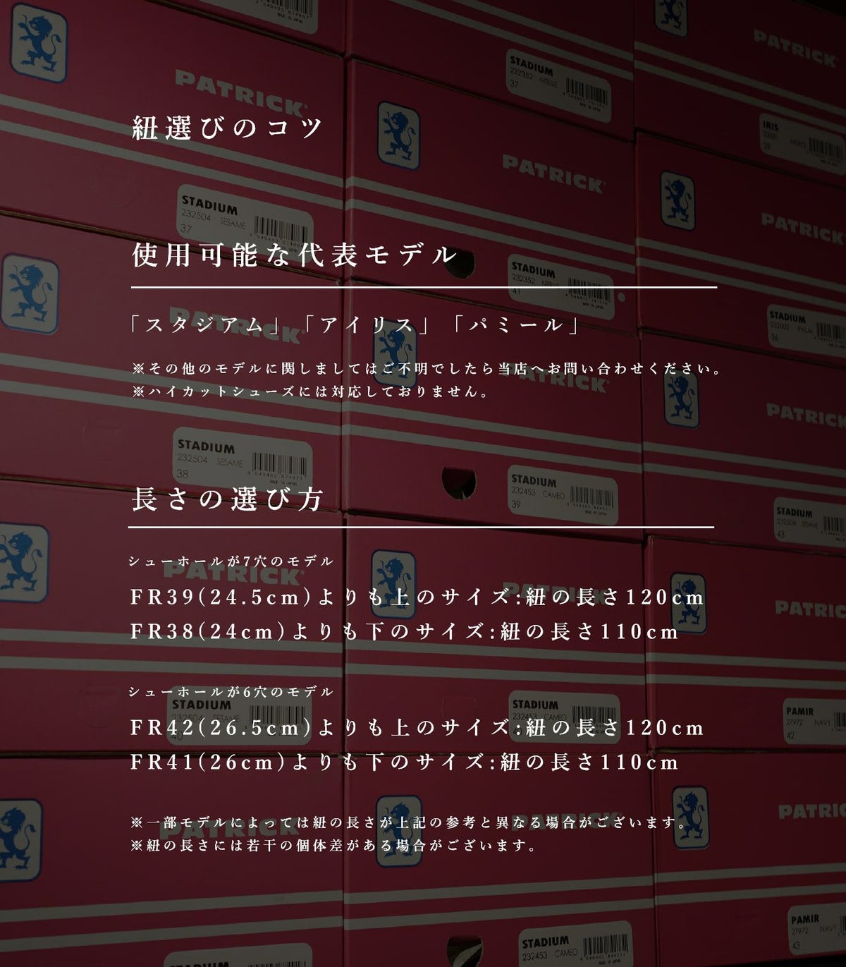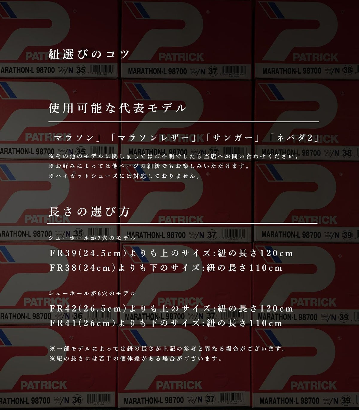 他の画像を見る パトリック シューレース 靴紐 純正 平紐 PATRICK Shoe Lace SL001 110cm 120cm 8mm幅★ ¥ 770 税込 在庫切れ カートに入れる お気に入りに登録する