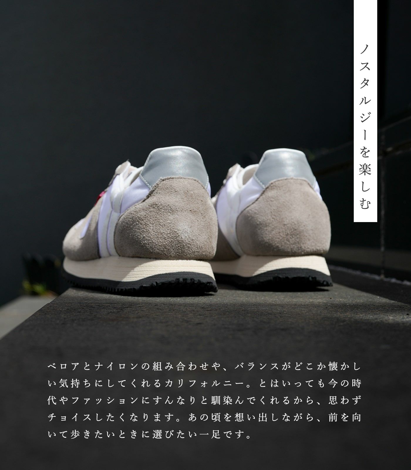 スポーツブランドとしてではなく、あくまでファッションブランドとして日本に輸入された当時の広告コピーは"足元のメイクアップ"。その想いは現在でも忠実に継承されており、流行やトレンドに左右されない姿勢は、時代を超え長く愛され続けています。