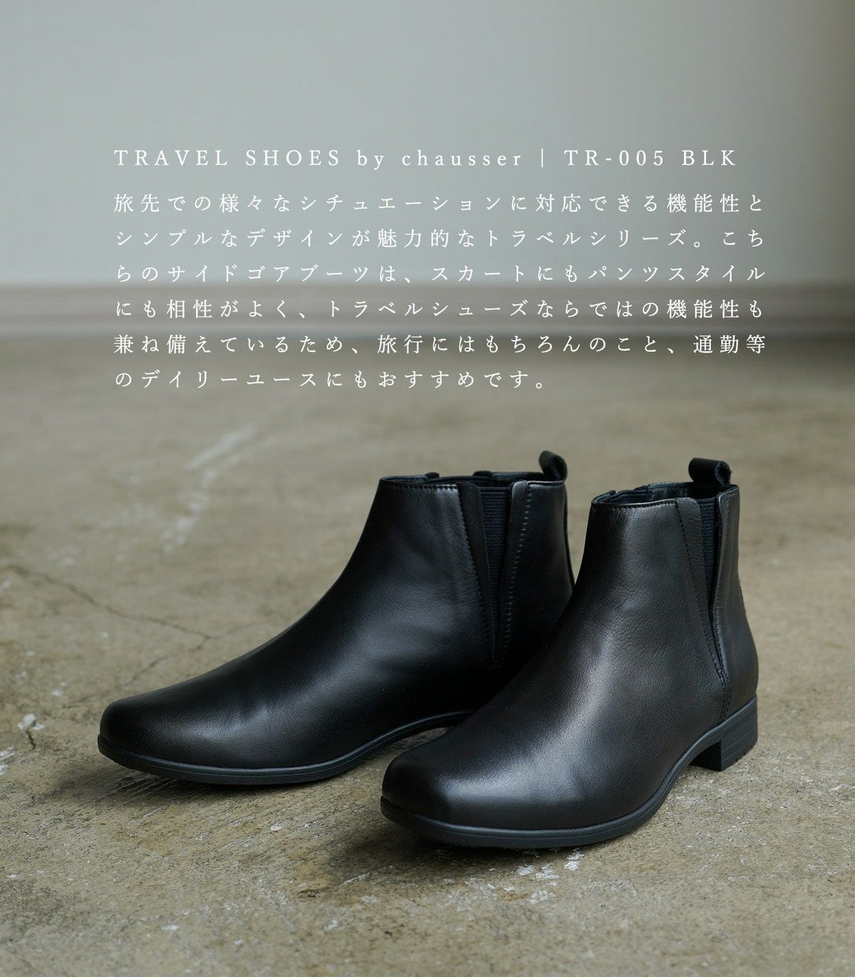 他の画像を見る 【サイズ交換は何度でも可能】 トラベルシューズ バイ ショセ サイドゴアショートブーツ TR-005 ブラック travel shoes by chausser TR-005 BLK 送料込 ¥ 25,300 税込 カートに入れる お気に入りに登録する