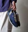 アッパー素材にはナイロンメッシュとベロアレザーを使用しております。ベロア部分につきましては『ワイヤーブラシやスエードブラシ』でブラッシングしていただければ軽めの汚れは落ちますが、ブラシで落としにくい汚れには『Collonil カーボン クリーニングフォーム 』がおすすめです。アッパーからソールの汚れまで丸ごとクリーニングでき、キレイな状態を長く保つことができます。定期的にお手入れを行うことで、愛着ある一足をより長く履き続けることができます。このようなコンビネーション素材の防水・防汚には『M.MOWBRAY プロテクターα』がオススメです。定期的なお手入れは皮革に潤いを与え、スニーカーを長くご利用いただく事ができます。